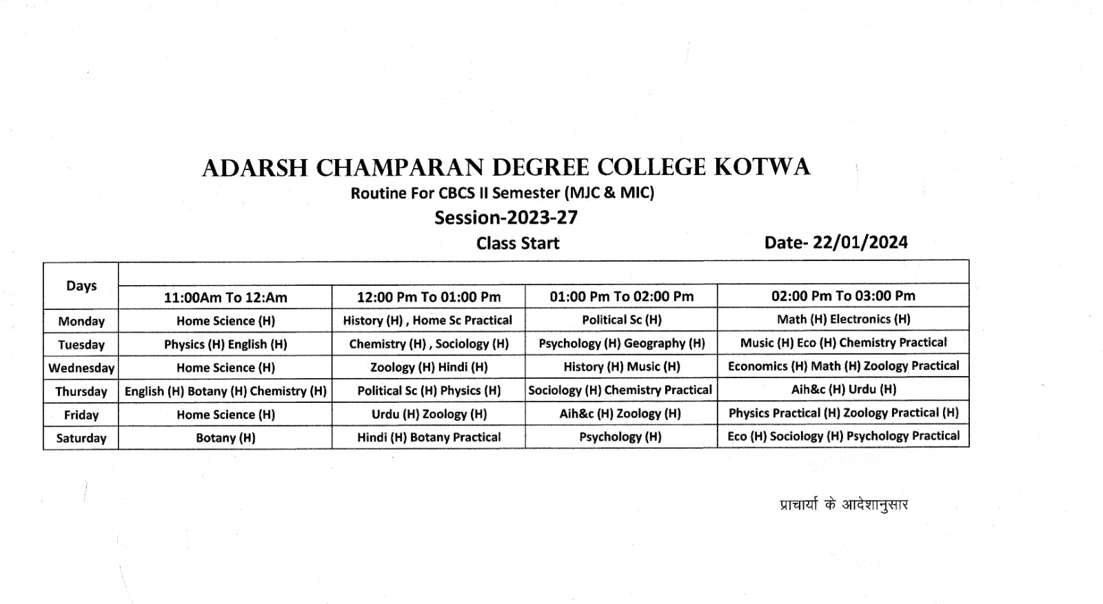 'SEMESTER-II/2023-2027 CLASS ROUTINE'